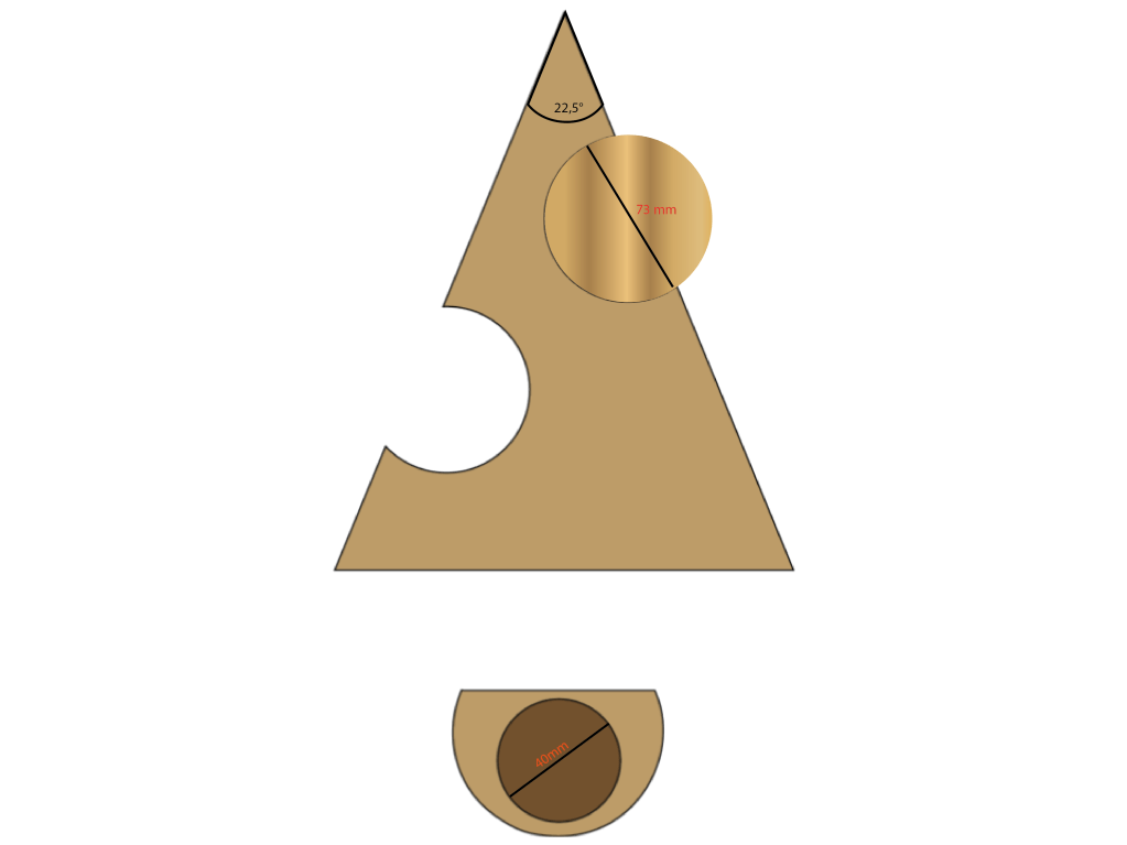 Dann zeichne ich mir mit dem 73mm-Aufsatz der Lochsäge 2 Löcher (siehe Bild) an. Die Ausschnitte der Löcher aufheben. In einem Ausschnitt davon wird mit dem 40 mm Forstnerbohrer ein Loch von etwa 15 mm Tiefe gebohrt. Das Loch muss 40 mm im Durchmesser sein, da die Teelichte in der Regel über 35 mm Durchmesser haben.